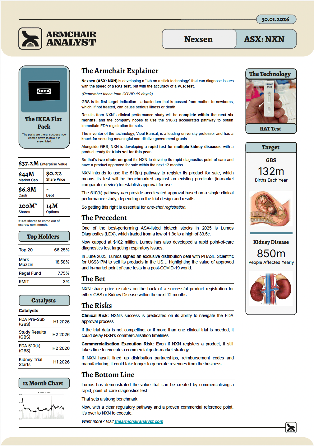 Given the rapid rise of both Lumos and Atomo in 2025, I wanted to work out whether NXN would be the next rapid, point-of-care company to run.