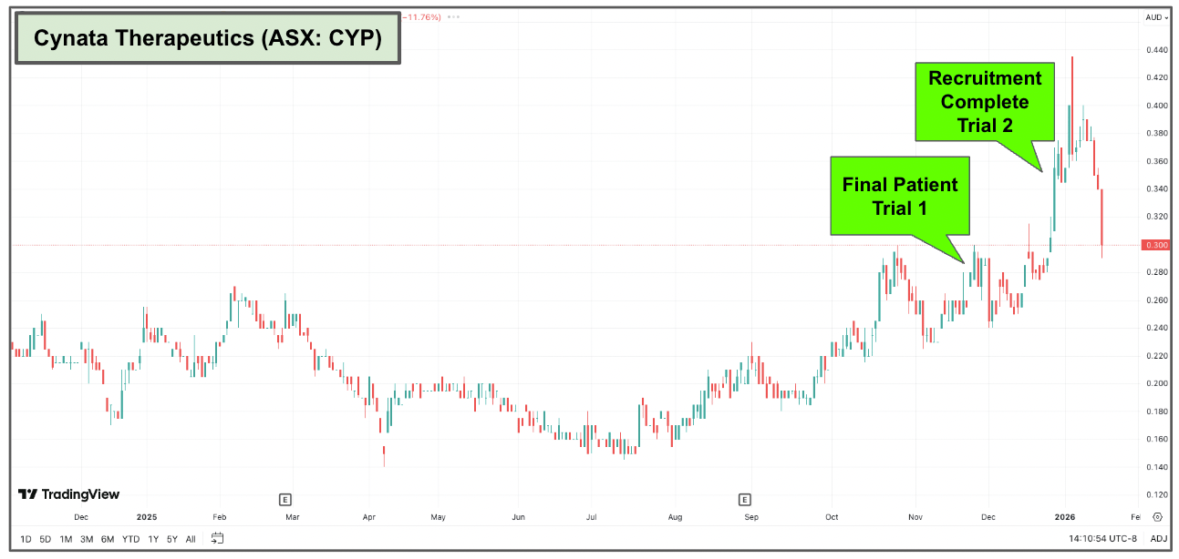 Now, CYP’s share price has already gone on a bit of a run since it announced that it had completed recruitment for both trials late last year.