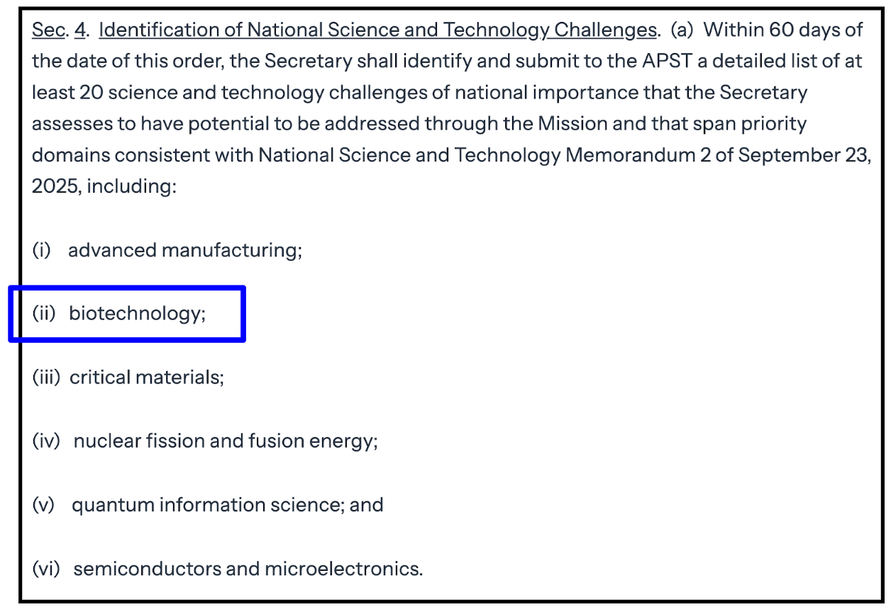 One of the key scientific pillars of the Genesis Mission is “Biotechnology”: