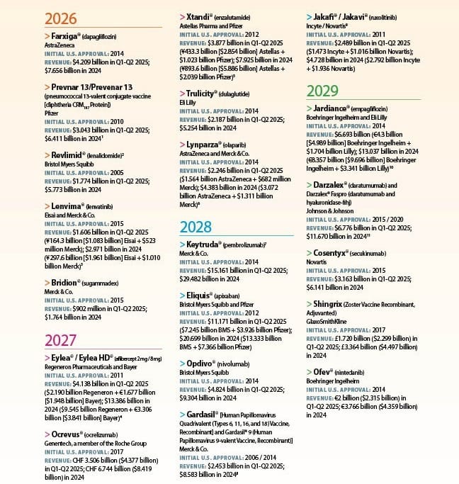 Exclusivity patents for many blockbuster drugs are set to expire before 2030, putting many high-revenue products at risk of facing competition from cheaper generics.