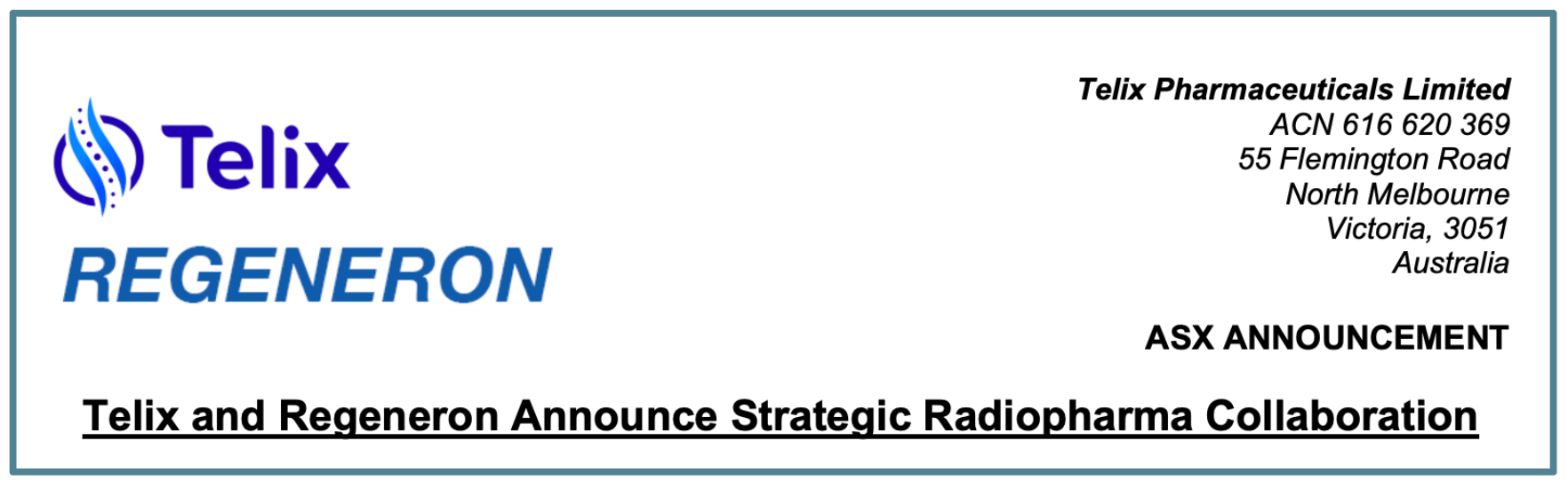This morning, as I was boarding a flight to Perth, I opened my Comsec app to the news that Telix Pharmaceuticals (ASX: TLX) and the US$80 billion-capped Regeneron (NASDAQ: REGN).