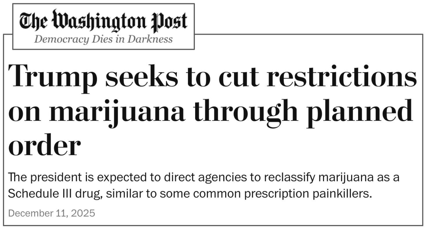 The Washington Post reported last week that Trump is planning to down schedule cannabis: