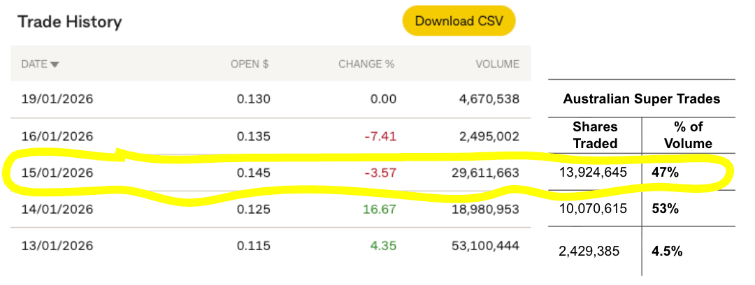 Australian Super, another large super fund, SOLD some of its holdings, $3.4 million in three days.