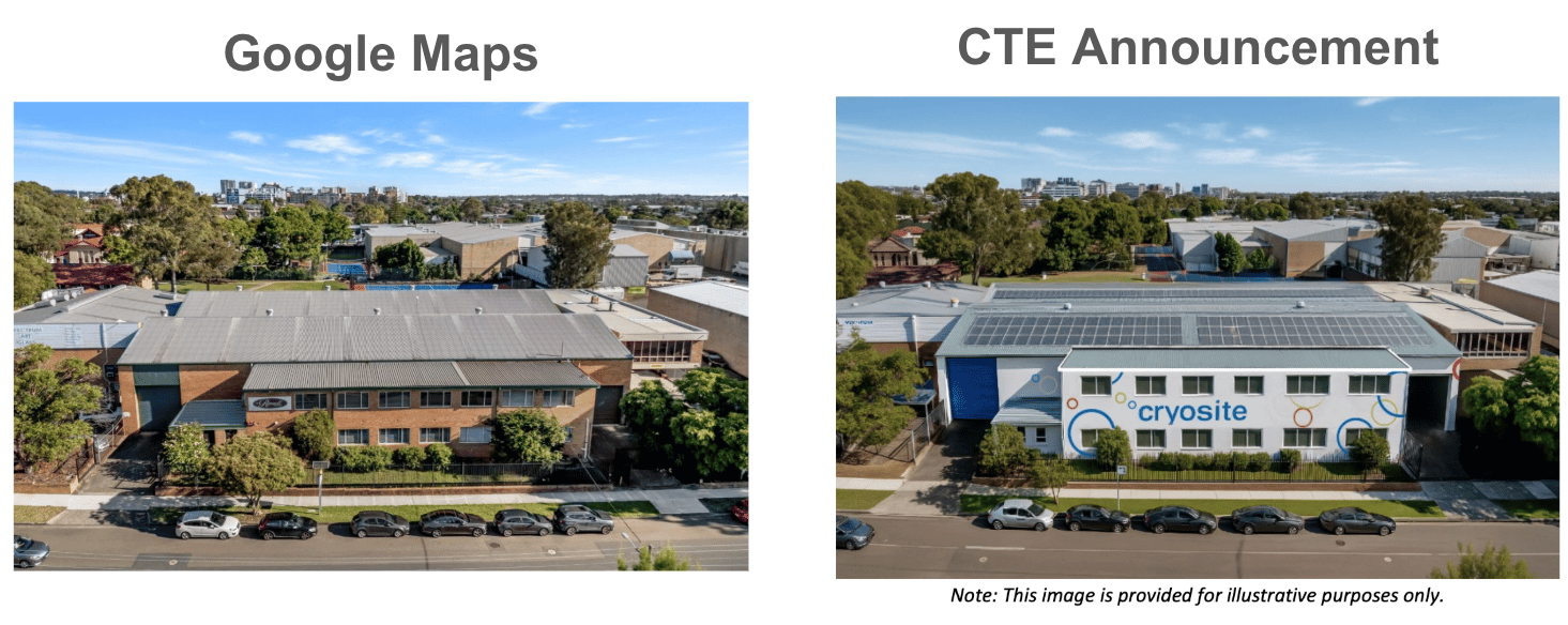 Cryosite (ASX:CTE | MC: $55M) completes the settlement on the new ~2,300 square metre facility in Auburn NSW for $9.5M, expanding its cryogenic freezing and storage facilities.