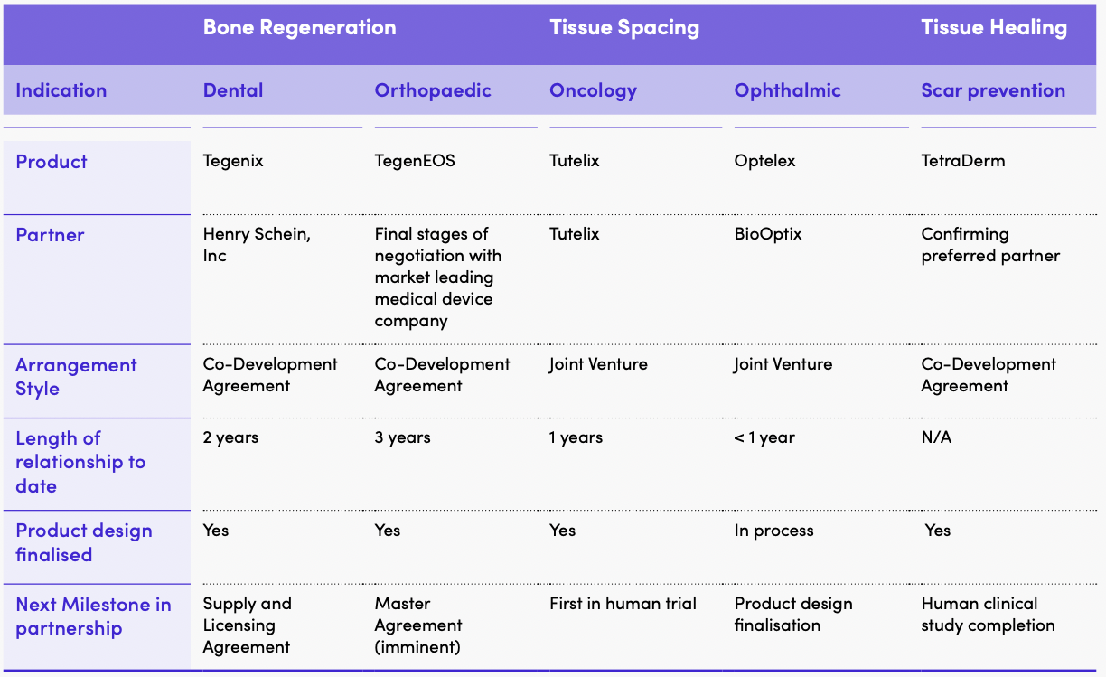 TTX’s most advanced application is for dental bone regeneration; it has a partnership with Henry Schein, a top distributor of dental products in the US.